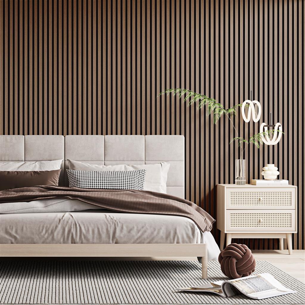 - Hoge akoestische waarden: Het akoestische wandpaneel van eikenhout biedt een uitstekende geluidsisolatie. Dit maakt het een ideale keuze voor ruimtes waar geluidsreductie essentieel is, zoals woonkamers, thuiskantoren en zelfs commerciële omgevingen.